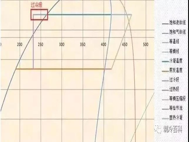 “过冷”:就是将冷凝后的饱和液体通过某种装置(如过冷器)和方法进行再冷却,使其温度低于冷凝压力下的饱和温度,称之为过冷。